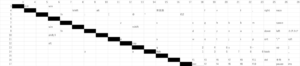 通常の自作キーボードは格子状に回路を組んでいるため行列でマイコン側のピンを割り当てていますが、今回の場合縦横にピンを分けることが出来ません。この場合、ピンの配列を2つ用意することで↑のような総当たり表を再現できます。